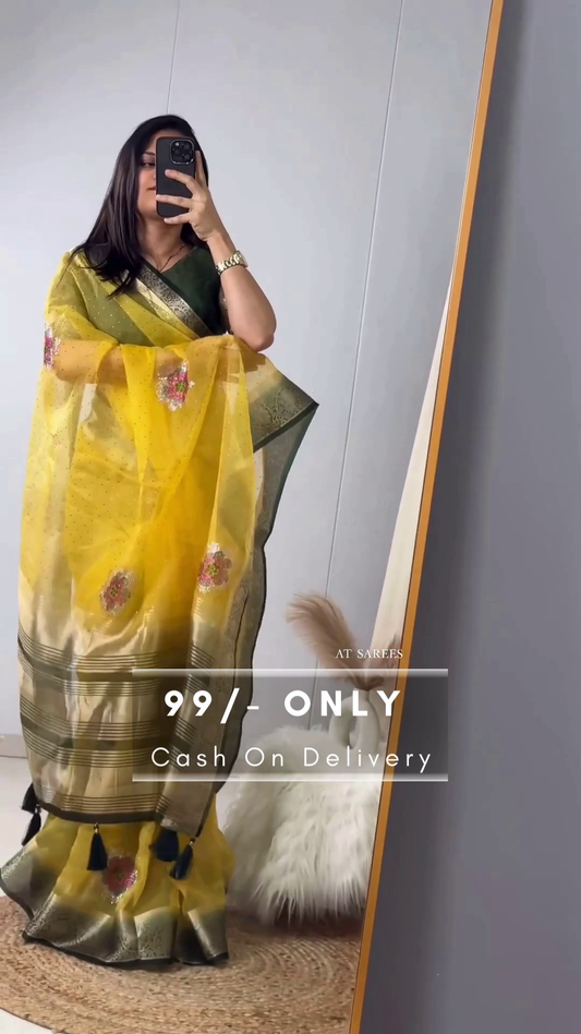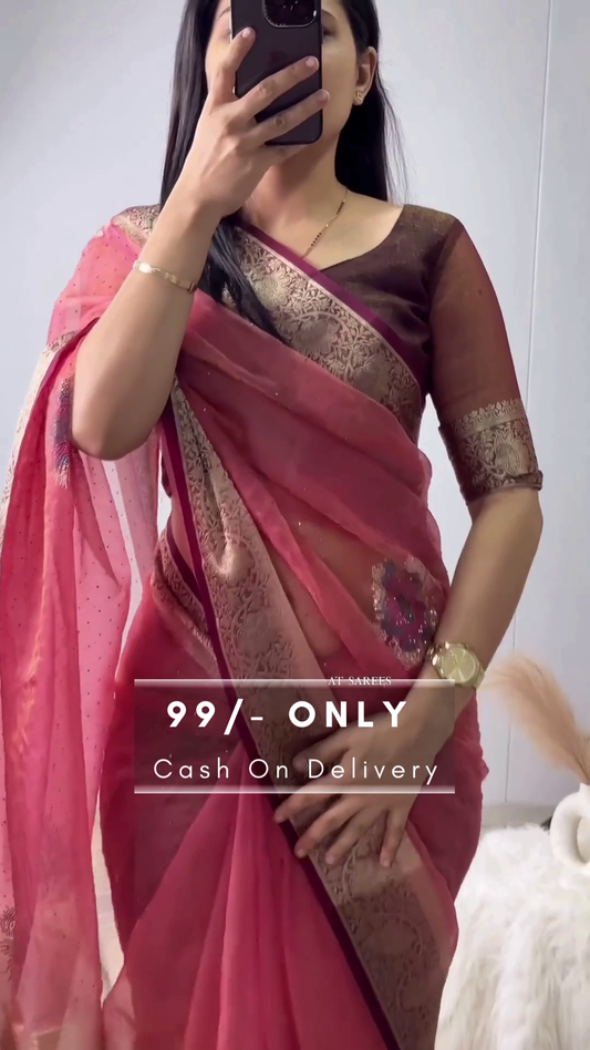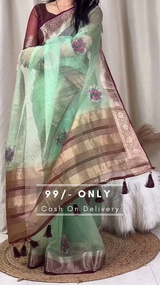 Satrani Women'S Organza Embroidery Saree With Unstitched Blouse Piece