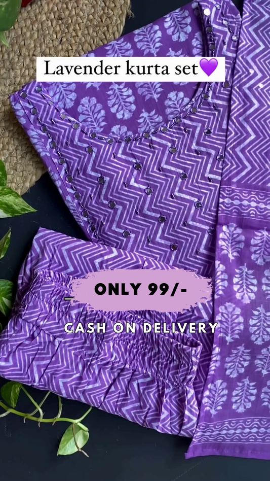 Purple & White Coloured Pure Cotton Printed Women Fully Stitched Designer Party wear Kurti with Pant