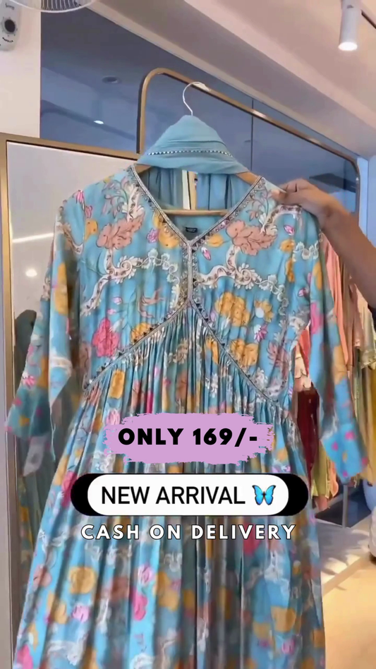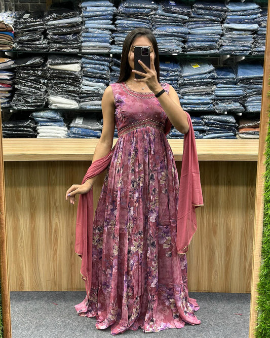 Designer Suit On Heavy Faux Georgette Fabric With Inner And Digital Print & Hand Work