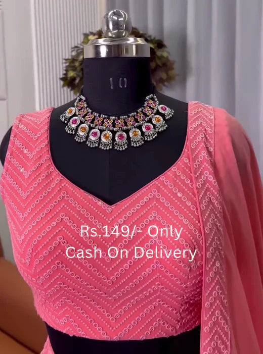 Beautiful Light orange Color Sequence Embroidery Lehenga choli for Wedding Function