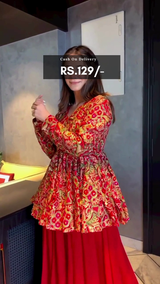 Red crepe printed palazzo suit