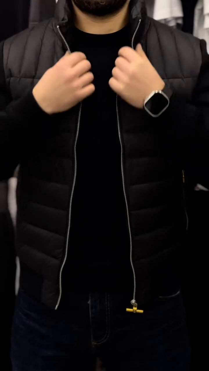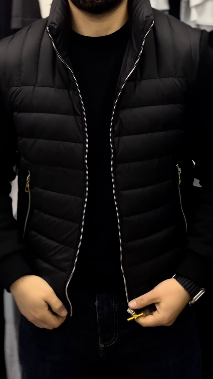 Men's sleeveless jacket. Zip opening Removable hood Two front zip pockets. Made of technical fabric, waterproof and windproof. Inner lining Very high quality and workmanship, carefully taken care of the smallest detail. Ideal for a casual and sporty look. Slim fit, slightly fitted cut.